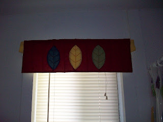 Finally finished with the redo of the hall bath -- such as it is. I designed a valance to coordinate with the leaf design in the shower curtain.